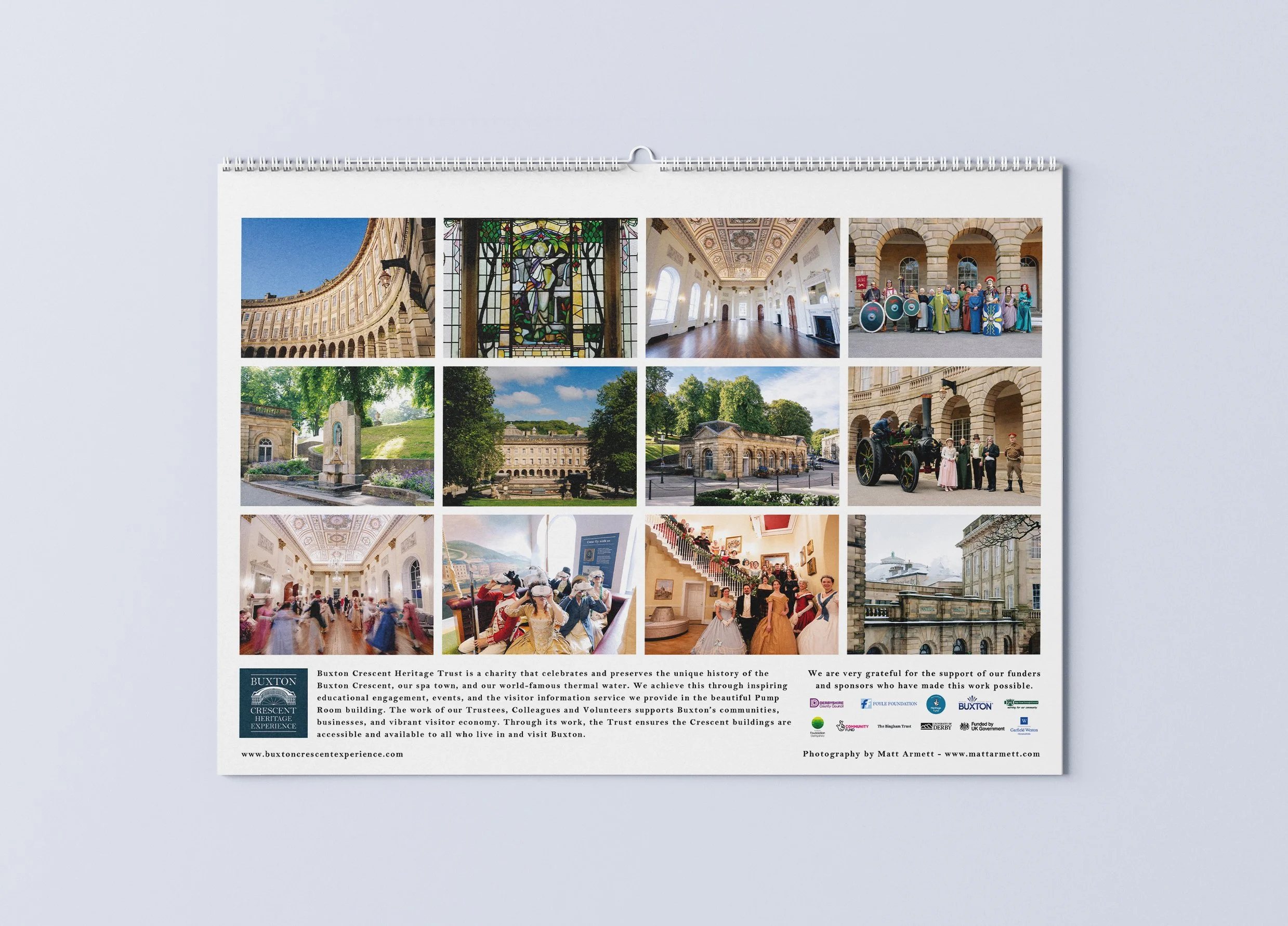 Buxton Crescent Heritage Trust’s 2026 calendar - Design and images by Matt Armett. It was for sale in the Pump Room, Buxton, as well as being distributed ed to friends and partners of the Trust. *Please note that these mock-ups differ slightly to the physical design, for display purposes.
